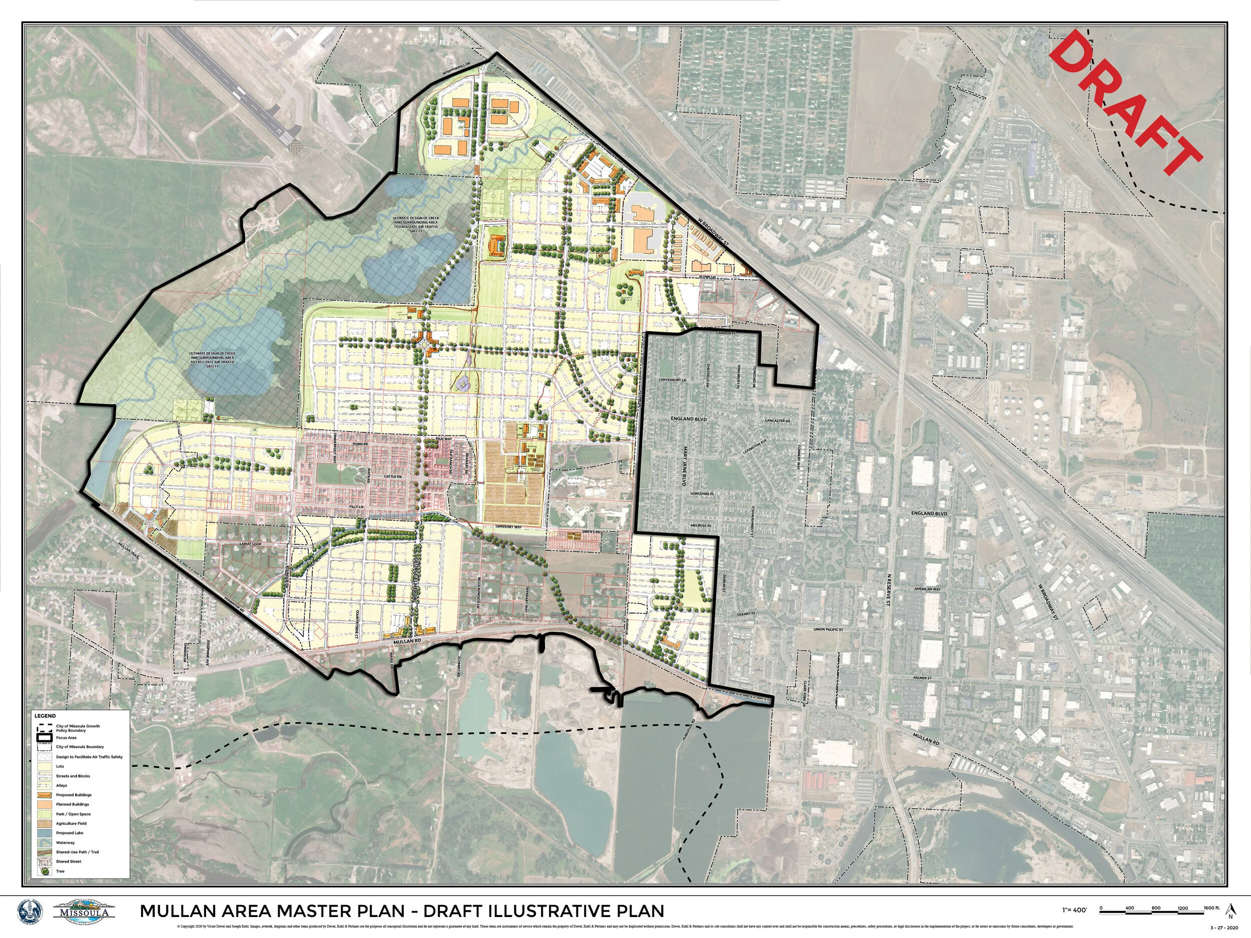 Formerly Known as the Mullan Neighborhood Master Plan, the Sx͏ʷtpqyen Neighborhoods Master Plan involved visioning and coding for a roughly 2,000-acre area six miles west of Downtown Missoula. The area was home to emerging neighborhoods, hayfields, and a channelized Grant Creek. The master plan provided a chance to create a holistic, consensus vision, and put into place regulations that were in alignment with the community’s values.